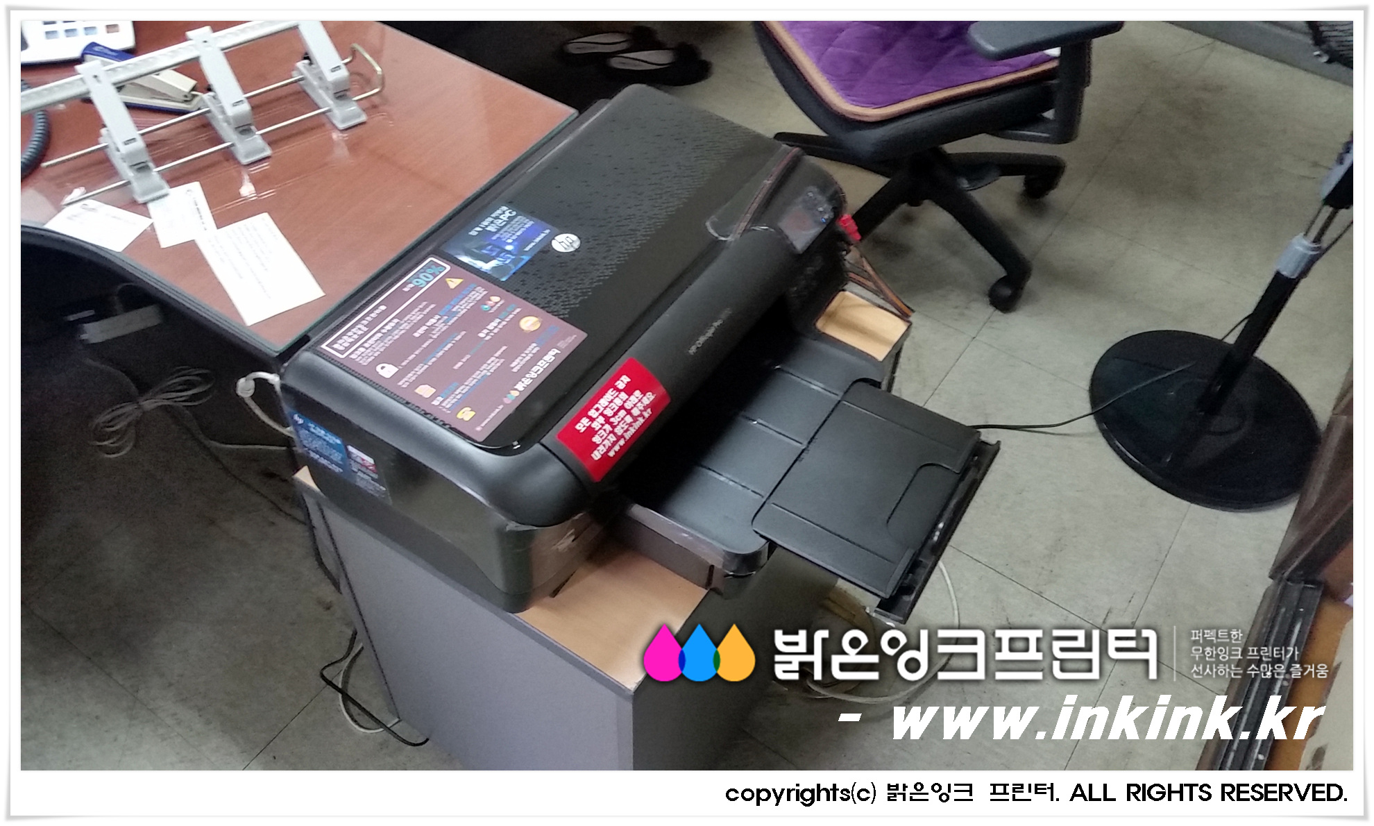 ¼Ãʵ¿¿¡ À§Ä¡ÇÑ ¿À¼¼Á¤¹ý¹«»ç¿¡ HP OFFICEJET 8100 ¹«ÇÑÀ×Å© ÇÁ¸°Å͸¦ ¼³Ä¡ÇØ µå¸°µÚ, ÇÁ¸°Å͸¦ Ä«¸Þ¶ó¿¡ ´ã¾ÆºÃ½À´Ï´Ù. ¹àÀºÀ×Å© ÇÁ¸°Å͸¦ ±¸ÀÔÇØ ÁֽŠ°í°´´Ô²² ±íÀº °¨»çµå¸®¸ç, Á¤Á÷ÇÑ Á¦Ç°, ¿Ã¹Ù¸¥ ¼ºñ½º·Î °í°´´ÔÀÇ ¹ÏÀ½¿¡ º¸´äÇϰڽÀ´Ï´Ù.